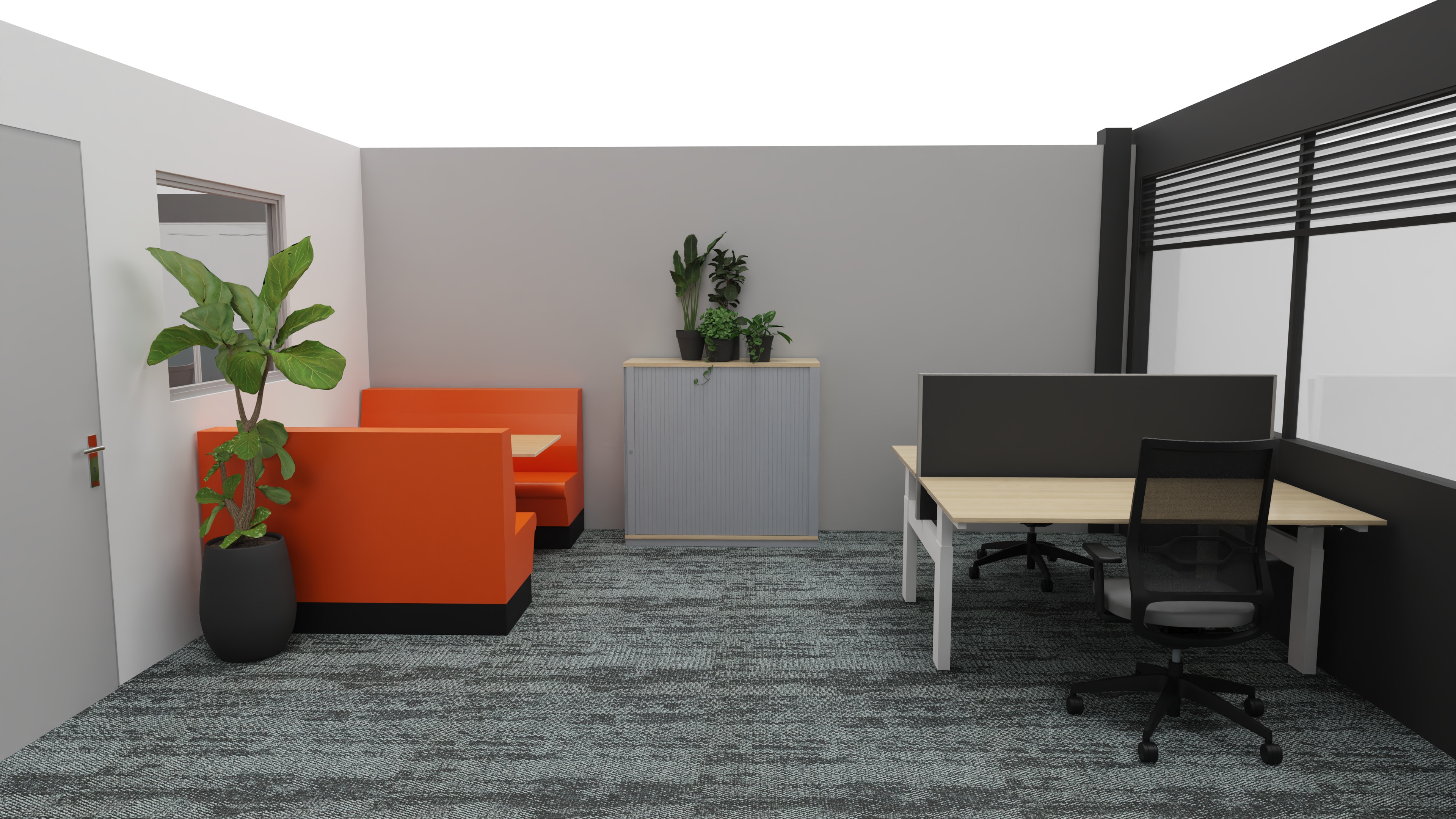 Kantoor #2 is een lichte ruimte van 19m2. De ruimte wordt gemeubileerd verhuurd met 2 tot 4 werkplekken, eventueel een zitje en opbergruimte. Het meubilair is ergonomisch en voldoet aan alle wetgeving.